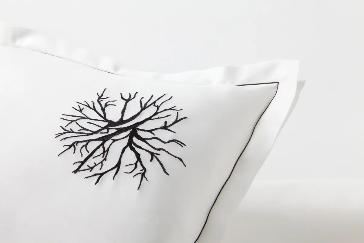 The chromatic contrast between black and white gives life to carefully embroidered natural shapes