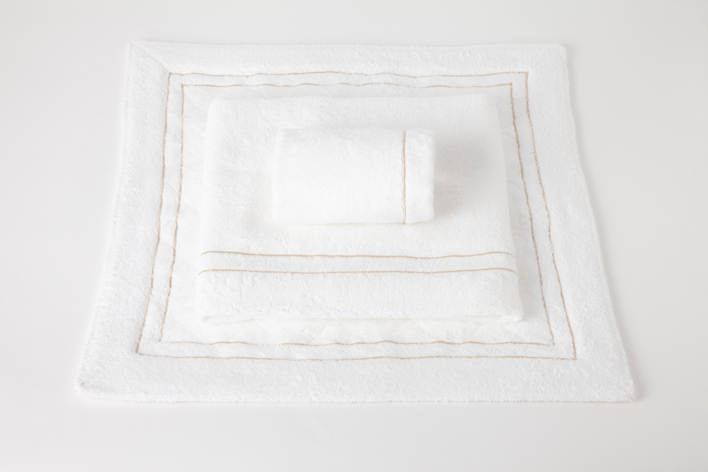 Guest towel with rolled hem h. 5 cm and two lines of White Gold cord.